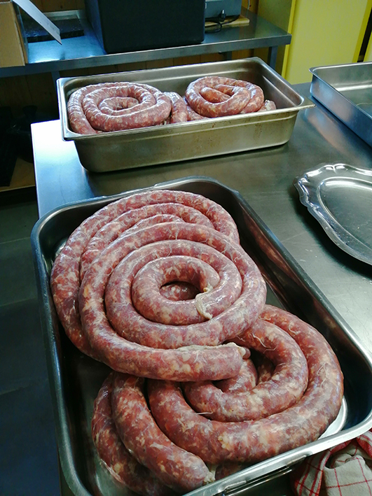 Sur une (grosse) matinée, venez apprendre à faire vous-même votre saucisse fraîche (de A jusqu’à Z). Porc et boyaux du Tarn. Repartez avec 6 kg ou 12 kg de saucisse (à consommer sous 8 jours ou à congeler).